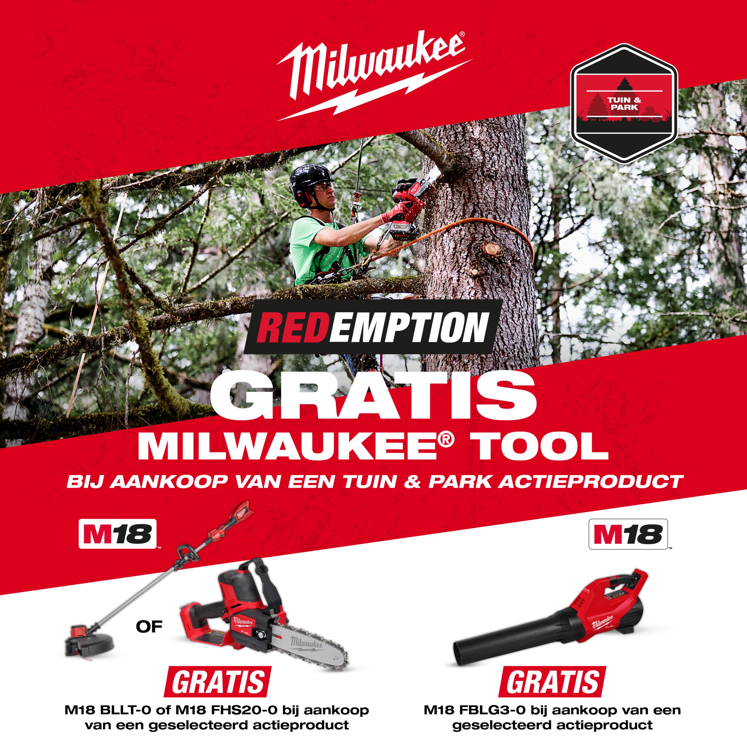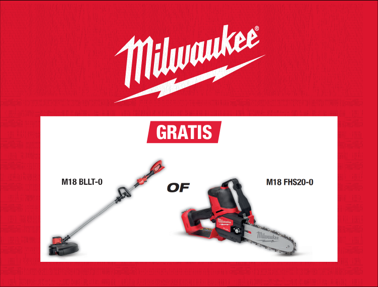 Scoor jouw Milwaukee bij BMB Techniek! Kies uit een van de geselecteerde actie producten uit het assortiment van tuin&park. Daarnaast maak je ook nog kans op gratis tools. Bij besteding van 250 euro of meer maak je zelf de keuze uit een van de gratis producten.