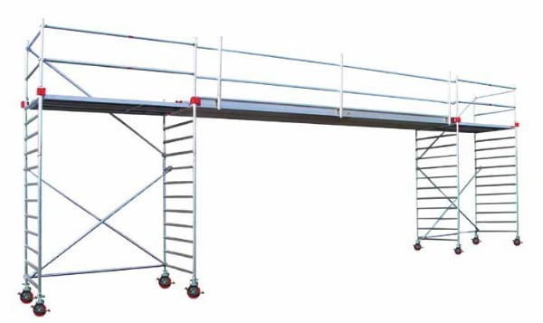 Leuning ten behoeve van de aluminium werkbrug. Kan zowel links als rechts worden geplaatst. Set bestaat uit: 2 leuningstaanders 1 knieleuning 1 heupleuning