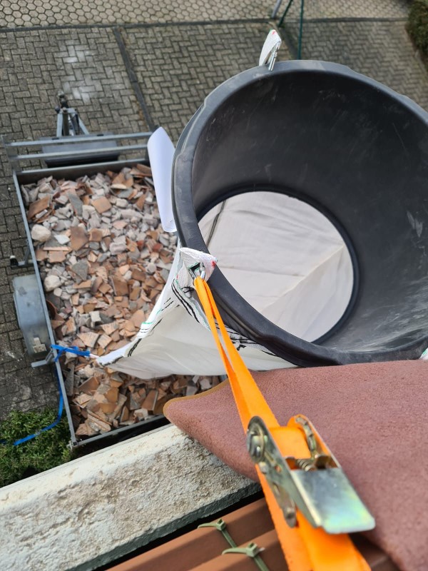 Met behulp van de stortslurf kan het puin gecontroleerd worden