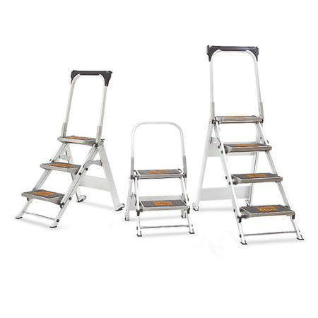 De verplichte beugel (vanaf 3 treeds) is in een handomdraai neerklapbaar.