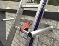 Om veilig een hoger gelegen sectie (bijvoorbeeld een dak of zolder) te kunnen betreden. De gegalvaniseerde beugels voorkomen dat uw ladder omwaait of zijdelings kan wegglijden. Wordt standaard geleverd inclusief sjorband.