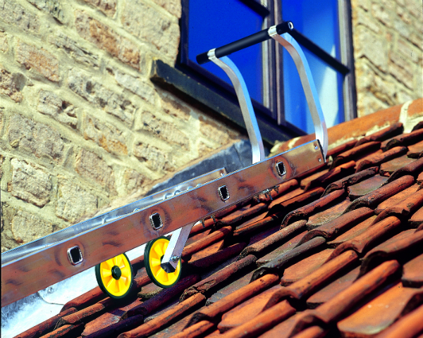 Om snel en veilig op hellende daken te werken. Eenvoudig in gebruik en te monteren op vrijwel iedere enkele ladder. Maximale belasting: 110 kg.