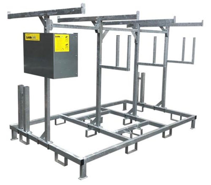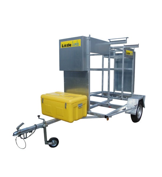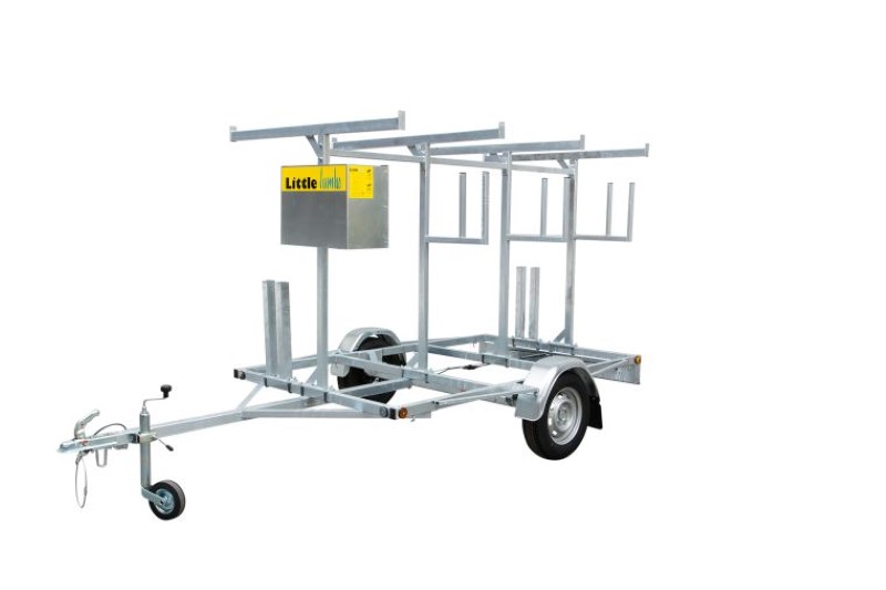 Extra robuust uitgevoerde steigeraanhanger met ruimte voor 12 meter rolsteiger (lengte 1,8 of 2,5 m).