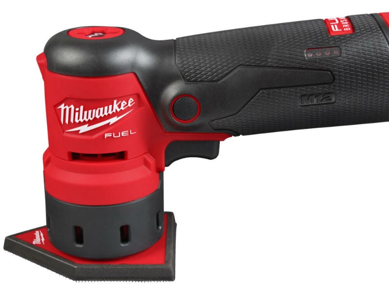 Compacte detailschuurmachine met een penta gevormde schuurzool voor onbelemmerde toegankelijkheid in hoeken