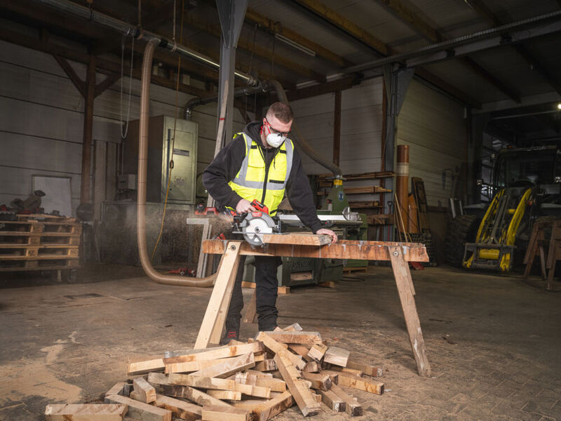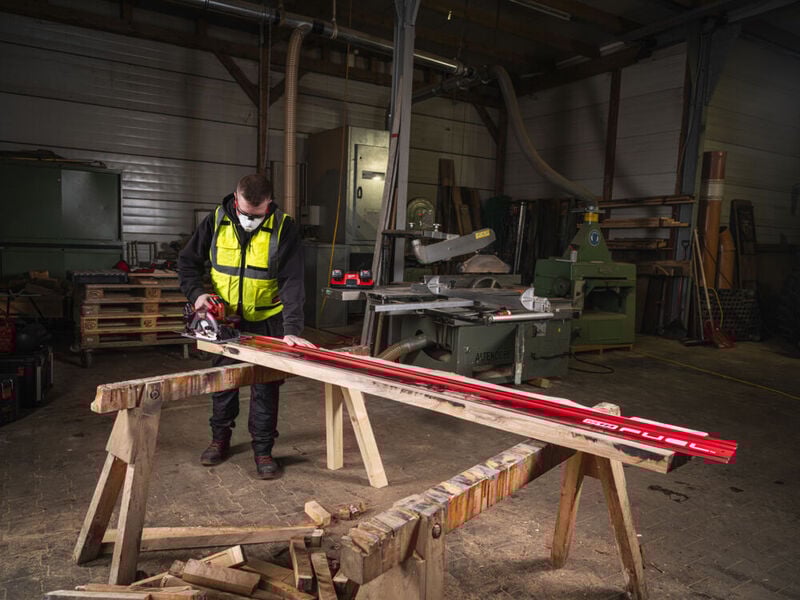 190 mm blad met een snijdiepte van 68 mm, waardoor de zaag door een stapel van 3x 22 mm OSB-platen kan zagen
