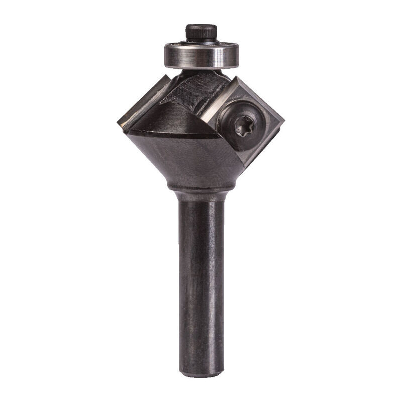 Afschuinfrees met twee vervangbare hardmetalen wisselmessen. Voorzien van een lager aan de onderzijde voor zelfgeleiding, waardoor geen mal nodig is.