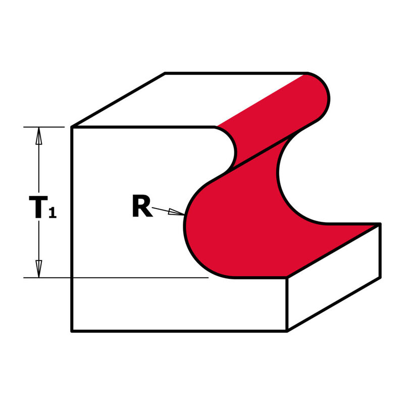 Hardmetalen tweesnijder voor het frezen van geďntegreerde vingergrepen in houten deur- en kastfronten, als alternatief voor het monteren van een knop.
