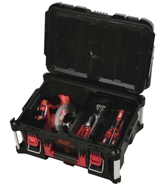 Milwaukee® PACKOUT modulair opbergsysteem zorgt voor revolutionair gereedschapstransport, ordening. Ontworpen om gebruikers de mogelijkheid te bieden een breed assortiment aan Heavy Duty gereedschapskisten, organisers en opslagbakken uit te wisselen en onderling te vergrendelen op verschillende manieren.