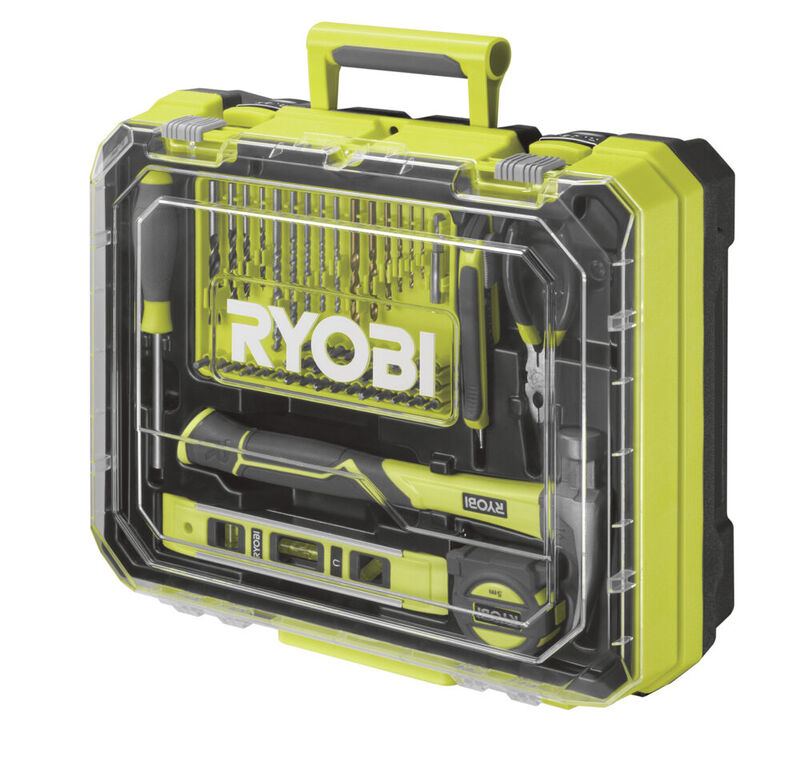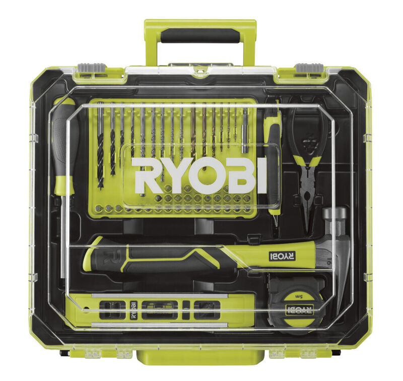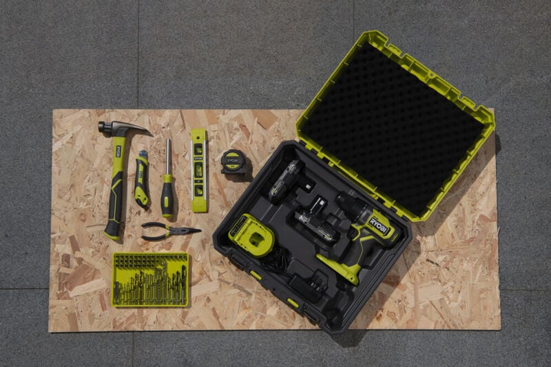 De RDD18-2C20TAH is een ideale starterskit en bevat alles wat je nodig hebt om direct aan de slag te gaan. In de set zit de 18V ONE+™ Accu Schroefboormachine, twee 2,0 Ah accu’s, een lader en een uitgebreide selectie handgereedschap. Je krijgt onder andere een RTM5M rolmaat van 5 meter, RPL150LN combinatietang, RSD17PCS schroevendraaier met bitset, RTL23CM waterpas, RH16FSS hamer, RSK18 mes, een 51-delige accessoireset én een robuuste 19″ gereedschapskist.