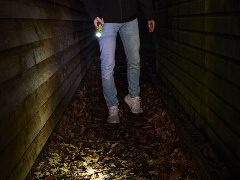 De zaklamp is ook uitgerust met een magnetische onderkant, waardoor je hem stevig op metalen oppervlakken kunt bevestigen. Dit maakt het mogelijk om je handen vrij te houden tijdens het werk, wat vooral handig is bij klussen waar je licht nodig hebt maar geen hand vrij hebt om de zaklamp vast te houden. Daarnaast kun je de zaklamp eenvoudig aan een riem bevestigen en de kop omhoog kantelen om je pad te verlichten terwijl je je handen vrij houdt.