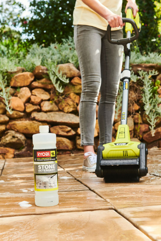 Reinig diverse vlakke oppervlakken in de tuin, zoals vlonders, kunstgras en terrassen.